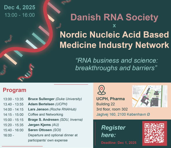 Join us for the inaugural joint meeting of the Danish RNA Society and the Nordic Nucleic Acid-Based Medicine Industry Network!